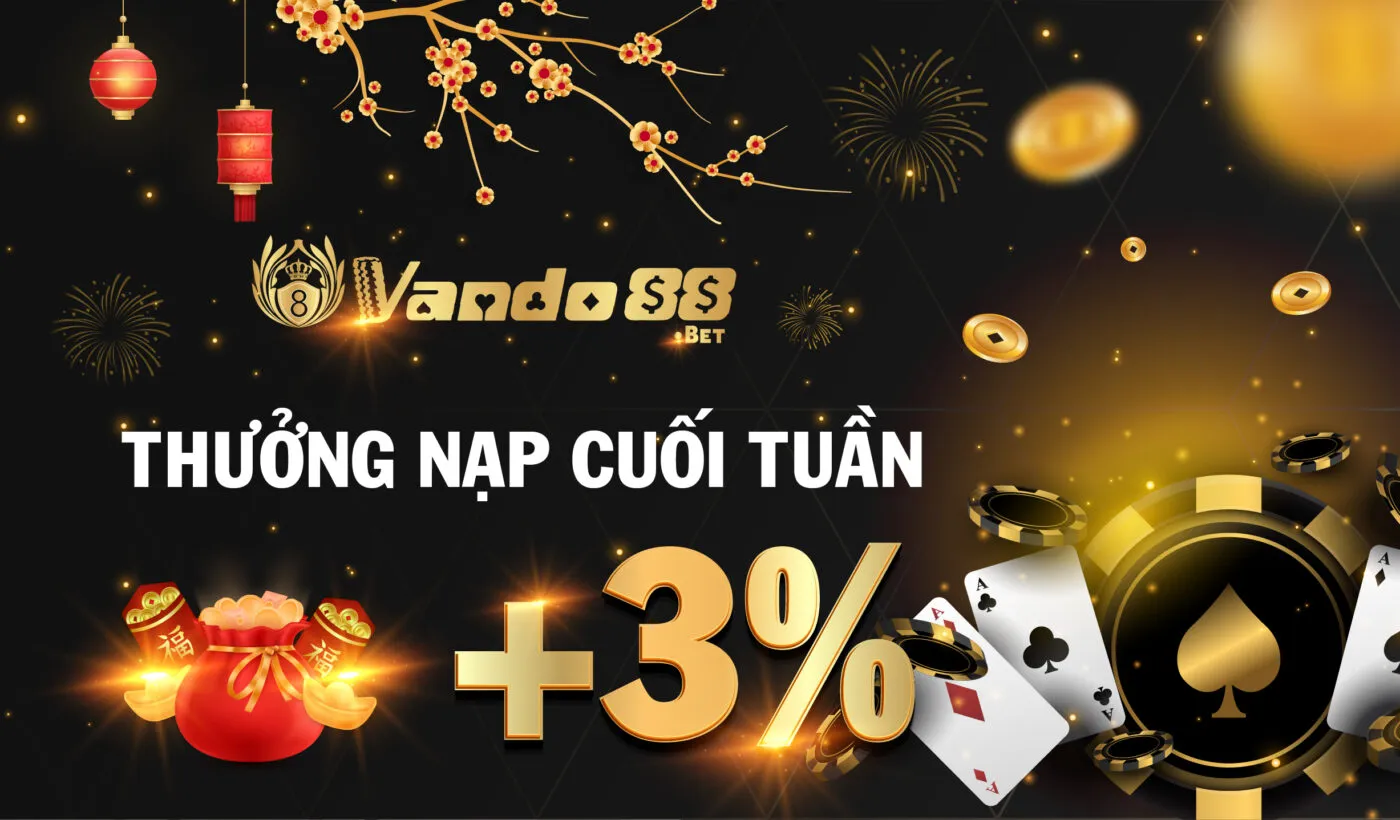 - Thưởng nạp cuối tuần: Tăng thêm 3% giá trị nạp từ thứ 6 đến chủ nhật, áp dụng cho mọi khoản nạp.